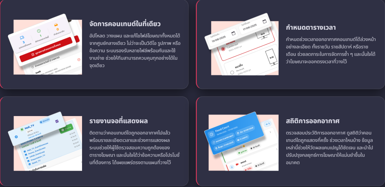 ซอฟต์แวร์บริหารจัดการสื่อโฆษณาบนหน้าจอดิจิทัลผ่านระบบ Cloud ที่ช่วยควบคุมการแสดงผลวิดีโอหรือภาพนิ่งในสถานที่ต่างๆ